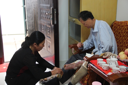 俗話說:夫妻本是同林鳥,大難來時各自飛。孫會敏卻用26年的堅持,給丈夫一個堅實的依靠。由于她丈夫燒傷十分嚴重,面部、頭部、胸口、雙臂、雙腿被火侵蝕的焦黑且已化膿,為防止感染,孫會敏每天都要花費幾個小時為丈夫清洗創面、消毒、上藥、包扎。為了減少丈夫的疼痛,孫會敏每次為丈夫擦身換藥時都是小心翼翼,先用鑷子將紗布揭開,再換上新藥重新將傷口敷好。藥換完后,孫會敏都會緊張得出一身大汗。