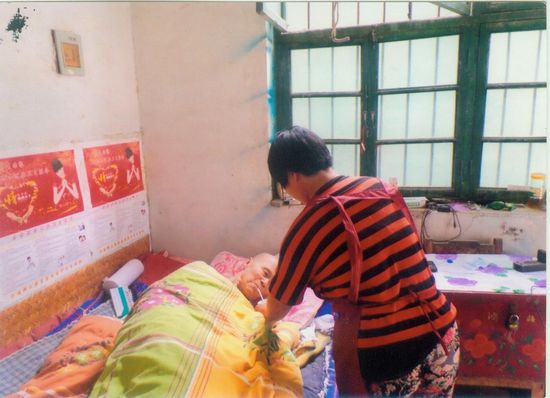 原以為所有的不幸隨著丈夫婆婆的去世而終結,但上蒼還是沒有放過這個可憐的女人。公公又被確診為前列腺癌并終身癱瘓。春菊娘家人剛剛得知其公公患病時心疼女兒,勸女兒把公公送到養老院。親戚鄰居也曾多次勸說她"兒媳婦照顧老公公太不方便了,還是把他送走吧"。但倔強的的春菊說"在我眼里公公就是我親爹,哪有兒女不照顧爹的呢?"她每天幫公公洗臉、洗腳、換洗尿布、擦拭身體。在她的精心照顧下,公公突破了剛患病時醫生曾說他生命最多不超過兩年的期限,已經度過了三個年頭,身體依然硬朗。由于長期過度勞累,春菊也落下了一身病,但是她從沒有給公公和家里人提過。