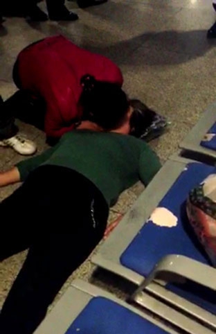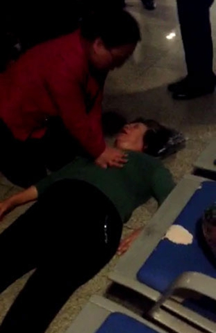 聽到廣播后,李艷梅立即從座位上站起來,快速地拖起行李跑往老太太昏倒的地點。來到A4A7區后,李艷梅看到不遠處有一群人正在圍站在那,她趕緊跑了過去。