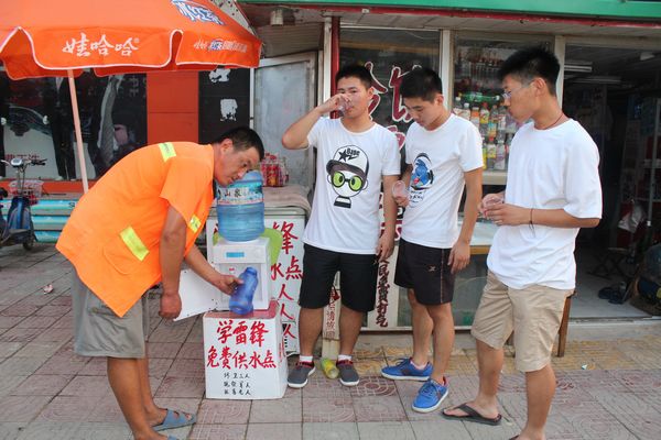 2013年夏季,氣象部門連續發布黃色、橙色高溫預警,他自己出資購買飲水機、桶裝純凈水,在店門前設置"學雷鋒免費供水點",為環衛工人和社會人群送去一絲涼意、奉獻一份愛心,被群眾和環衛工人親切地稱為"趙雷鋒"。