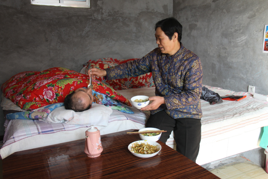 躺在炕上的孟德利,已經57歲,頭腦清醒的他,臉上時不時露出幸福的笑容,然而,除去頭部整個身體失去知覺。23年一直堅守,照顧這樣一位手腳都不會動的高位截癱的病人,在我們筆者看來難以想象。為了延緩丈夫肌肉萎縮,劉寶花便經常用手輕輕地替丈夫按摩全身,由于肢體不能活動,劉寶花便小心翼翼地給丈夫喂飯,由于大小便失禁,大便經常不通,劉寶花就用手摳幫助丈夫排便……讓外人感到不可思議的是,盡管癱瘓在床已經23年,孟德利卻從沒有得過褥瘡。“這輩子,能和寶花一起生活,真是我的福氣,只有來世報答了……”說起妻子對自己20多年來的精心照顧,孟德利哽咽著流下了幸福的淚水。