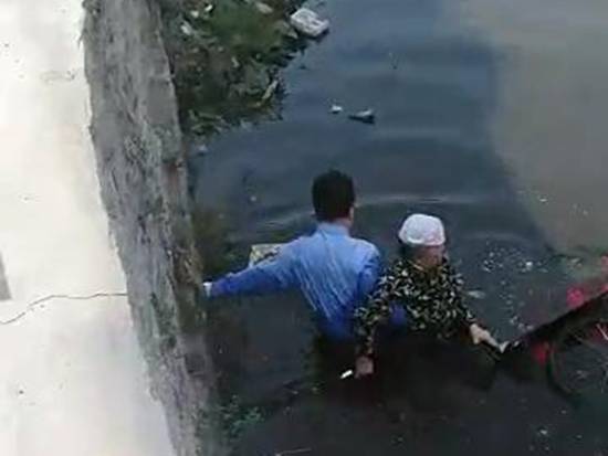 目擊者孫先生說:“救人的場面很感動。白友波把老太太抱上來后,大家又一起把她的三輪車拽上來,下面可臟了,河水又黑又臭,里面還有很多生活垃圾。”