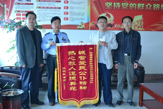 為表達謝意,王鵬和父親特意做了一面寫有“城管愛民公仆精神,熱心救人道德典范”的錦旗送到了白友波的手中,并送上感謝金。