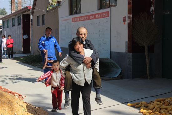 盡管她四處求醫、精心侍候,但仍然沒有阻止公公病情的惡化, 到了2010年冬天,公公的下肢完全失去了知覺,大小便經常拉到床上或褲子里。天氣越來越冷,她擔心晚上去廁所會感冒,就在公公的臥室里安了一個坐便器,每次大小便后及時地打掃。為了讓公公有一個好心情,劉桂香除了每天為他換洗內衣和被褥外,天氣晴朗的時候還背著他到大門外曬曬太陽,呼吸呼吸新鮮的空氣,最大限度地讓公公感受到生活的溫暖。