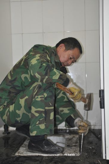 閆國良心里明白公廁科在資金上的難處,對于損壞的公廁設備,他是能修就修,絕對不會因為省事就輕易更換新的設備。在進行公廁無障礙設施更換時,需要把蹲便器改為座便器,專業的師傅都說要把原有的蹲便器給砸了,可閆國良卻心疼了。為了盡量保持蹲便器的完整,他想了一個最笨的方法,用工具把固定在水泥地上的蹲便器一點點地“割”了下來。把一個蹲便器砸壞,只需要幾分鐘的時間,而閆國良把這蹲便器從地上分離出來,卻用了兩個多小時,甚至連手都被割傷了。閆國良說,“一個蹲便器要300多塊錢呢,又沒壞,砸壞了實在可惜,留著還能備用!痹谀嵌螘r間里,閆國良從早上6點多一直干到晚上12點,硬是把12處公廁的蹲便器全部完整地分離了出來。