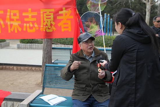 陳一陽1973年時借調(diào)到淄博市環(huán)辦,主要任務(wù)是豬龍河治污調(diào)查,有李樹玉、王家論及陳一陽3人,用了大約一年的時間以市的名義向中央寫出報告,中央領(lǐng)導(dǎo)批示給淄博環(huán)境治理物資如水泥、鋼材、設(shè)備等價值約2000多萬元,用于解決污染問題。經(jīng)過治理,豬龍河水質(zhì)有所改善。后來陳一陽一直在環(huán)保工作的第一線,為了淄博的環(huán)保事業(yè)奮斗和付出。在1985年離職休養(yǎng)后,不忘老本行,依然關(guān)心著環(huán)保事業(yè)的發(fā)展,依然支持一線環(huán)保工作者的工作。經(jīng)常見到他在公園里為市民發(fā)放印制成冊的《中華人民共和國環(huán)境保護(hù)法》和《公眾環(huán)境空氣質(zhì)量指標(biāo)科普宣傳手冊》的身影,經(jīng)常聽到他對市民宣講低碳出行、不亂扔垃圾、節(jié)約用水等環(huán)保知識。陳一陽經(jīng)常順著河流巡查,利用兩個多月的時間,發(fā)動以前的老戰(zhàn)友、老同事、老鄰居,成立了淄博市離退休環(huán)保志愿者大隊,他任大隊長,環(huán)保志愿大隊分為9個小分隊,每個志愿者都登記造冊,陳一陽還自費印制了隊旗、分隊旗、志愿者袖標(biāo)。目前已有39位老人加入了環(huán)保志愿者大隊,他們中年齡最小的60歲,最大的已經(jīng)86歲。陳一陽說:“我們主要任務(wù)有三個,一是監(jiān)督是否有企業(yè)存在偷排行為,其次是在力所能及的范圍內(nèi)清潔河道,最后就是搞好環(huán)保宣傳。按照計劃,我們每周活動一次,發(fā)現(xiàn)問題,及時反饋給環(huán)保部門。”組成這個隊伍的主要目的是通過老年人的實際行動,感召廣大居民增強環(huán)保意識和志愿服務(wù)意識,共同保護(hù)好淄博市的河道衛(wèi)生,維護(hù)好淄博市的城市形象,讓更多的人參與到生態(tài)淄博建設(shè)中來。行走在豬龍河的岸邊,看著河水清澈、兩岸繁花盛開,陳一陽覺得很幸福、很滿足。