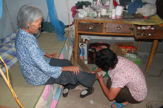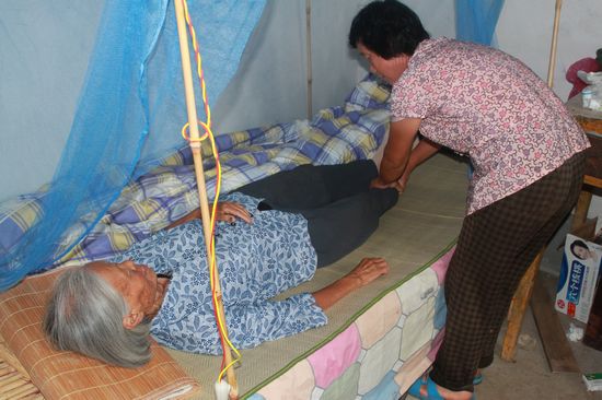 在程豐雪的悉心照料下,癱瘓臥床八年之久的公公身上從沒生過褥瘡。直至老人生命的最后一刻,仍在打針治療。
