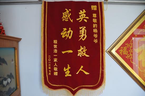 楊朋義現(xiàn)年已經(jīng)接近七十歲的年紀,當時將這個孩子救上岸之后,自己也已經(jīng)筋疲力盡,體力不支。楊朋義告訴記者:“救上來的這個孩子體重能有150多斤,特別沉,我也是拼盡全力才把他救上岸來的,上了岸上我兩條腿都不好使了,嗓子像冒火一樣,撲通就跪那去了。”