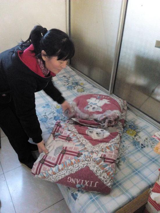 走進老人的房間,屋子被收拾得干干凈凈,老人身上穿得整整齊齊。夏天孫士秀不顧自己的頭疼病,每天給老人洗澡、洗衣服;冬天把老人床上鋪得厚厚實實的,睡覺前給老人被窩里放上暖水袋捂熱。她從不怕老人臟,不閑老人煩,耐心細致地照料著老人。有一次,老人不小心把便盆扣翻在地上,孫士秀沒有半點怨言把它收拾干凈,反過來還安慰老人,心疼婆婆不是癱瘓就不會發(fā)生這樣的失誤。老人病情嚴重的時候糞便不暢,她強忍著臟臭幫老人用手摳,經(jīng)常反胃連飯都吃不下。她包容婆婆的一切,用心照料著這個沒有血緣的媽。