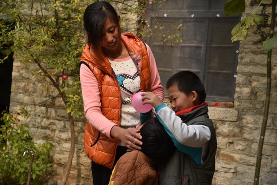 張朋照顧兩個(gè)孩子