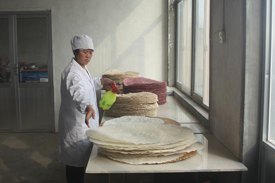 這時(shí)凌福葉覺著,本村的婦女勞動(dòng)力是有限的,于是她又發(fā)動(dòng)臨村婦女勞動(dòng)力在家加工,收貨、銷售,不但自己能掙錢,還能帶動(dòng)其他婦女利用農(nóng)閑季節(jié)創(chuàng)富。隨著加工量的增大,她發(fā)現(xiàn)地瓜淀粉的數(shù)量也很大,淀粉——地瓜的精華,在有經(jīng)驗(yàn)的老人們的指導(dǎo)下,又開始利用地瓜淀粉原生態(tài)的特點(diǎn),不用養(yǎng)漿,不加任何佐料,純手工制作粉皮,這樣做出來的地瓜粉皮有耐煮、勁道、順滑、口感好、色澤晶瑩透亮、味香甜美等特點(diǎn)。可以炒、燉、涼拌著吃。令她沒想的是,產(chǎn)品一出來就供不應(yīng)求,深受廣大客戶歡迎,由此她又多了一條新的加工項(xiàng)目,成功的喜悅更加堅(jiān)定了她創(chuàng)業(yè)的信心。于是在2014年10月我們成立了日照璞真工貿(mào)有限公司。利用這個(gè)地區(qū)紅薯貨源充足的優(yōu)勢(shì),開發(fā)更多的紅薯產(chǎn)品加工項(xiàng)目,例如紅薯饅頭、紅薯餡月餅等。2015年10月她又成功的招商了一位萊陽加工紅薯干、紅薯?xiàng)l的老板,此加工項(xiàng)目不僅解決了本村婦女農(nóng)閑季節(jié)就業(yè)問題,而且豐富了公司的產(chǎn)業(yè)項(xiàng)目。看到今天紅薯產(chǎn)業(yè)的蓬勃發(fā)展,從小吃紅薯長(zhǎng)大的凌福葉,堅(jiān)信紅薯產(chǎn)業(yè)必將圓我創(chuàng)業(yè)夢(mèng)。可令她遺憾的是,由于替朋友擔(dān)保,信譽(yù)度受損,不能再獲得銀行的支持,也不能享受國(guó)家一些創(chuàng)業(yè)扶持政策。加上2008年公公突發(fā)心臟病,做了一次心臟瓣膜置換手術(shù),2010年,父親患尿毒癥,2012年老公又在一次意外事故中受傷,造成肢體三級(jí)殘疾,使家庭債務(wù)更加繁重,近年來一直負(fù)債經(jīng)營(yíng),持續(xù)還債,用信譽(yù)支撐著事業(yè)步步前進(jìn)。資金的限制,使她沒有經(jīng)濟(jì)實(shí)力辦QS認(rèn)證,她的產(chǎn)品就不能走進(jìn)大中超市。
