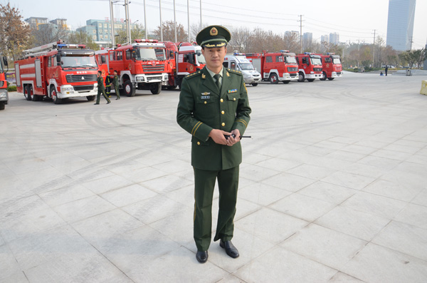 現場救援人員被分成若干小組,一組與物業人員和住戶取得聯系,統計被困人員數量;一組負責外圍警戒,并用車載廣播喊話安慰被困者;一組登上登高消防車,攜帶空氣呼吸器、水袋進入樓內救人、滅火;還有一組攜帶排煙機在樓道口排煙。作為特勤中隊的指導員,梁佃軍帶著自己的隊伍,沖在火場最前線。他們的任務是到最高、最危險的14層至18層救援。