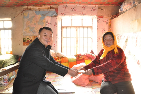 李明貴(左一)給困難群眾送慰問(wèn)金