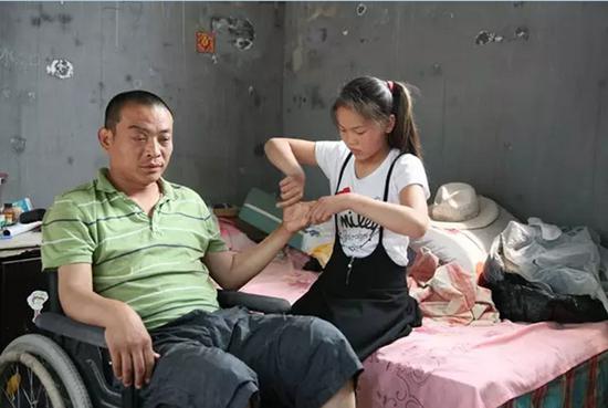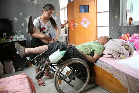 由于血液循環不暢,袁保軍的身體經常發麻。這時,冰冰便為父親捶背和按摩,時間不長,冰冰頭上便沁出了細細的汗珠。