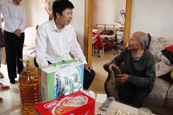 牟孝棟看望自己背的老人并與老人結成長期對子