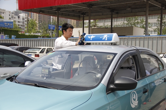 牟孝棟出車前擦拭出租車