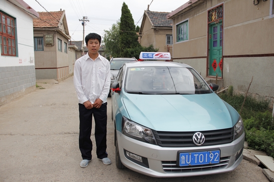 牟孝棟在自己的UT0192號出租車前