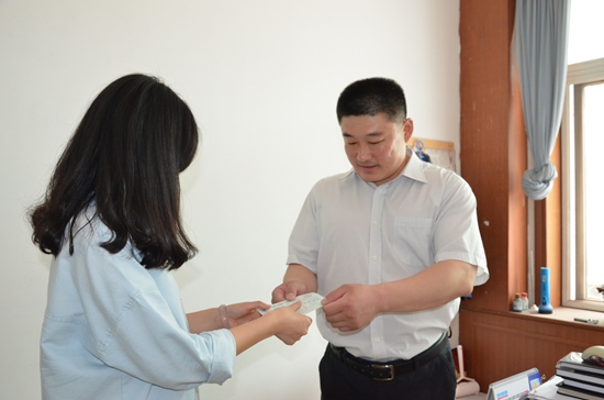 2016年6月6日上午8時,趙軍和往常一樣,到轄區(qū)的胡家莊、北嶺社區(qū)檢查衛(wèi)生,在返回單位的路上他無意中發(fā)現(xiàn)地上有一張蓋了章的票據(jù),他撿起來一看,原來是一張4萬元的現(xiàn)金支票,密碼清清楚楚的寫在支票的左上方。趙軍的第一反映就是,失主肯定是到銀行辦理業(yè)務(wù)時不小心丟的,于是他就在此等了20多分鐘,不見有人來尋找。于是他回到單位后他第一時間告知了黨政辦,通過114電話查詢,找到了失主的工作單位。一個多小時候后,失主劉女士來到趙軍辦公室,趙軍仔細與劉女士核對支票信息,確認無疑后,趙軍把支票完整的交給了失主劉女士。