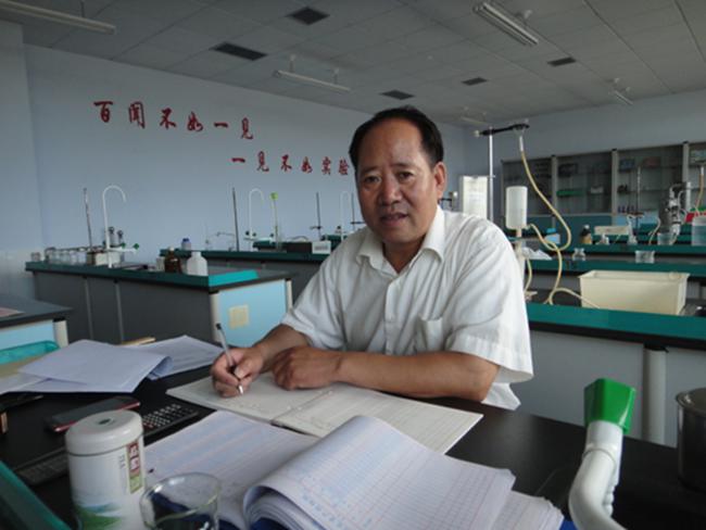 今年55周歲的王明余1983年畢業于昌濰師專化學系,他自任教以來就非常喜歡做實驗。工作中他除了備課、上課外,就數呆在實驗里的時間最多。凡是課本上要求給學生做的實驗他一個不落,很多課本上沒要求做的,只要對啟發學生智力有益,能引起學生對化學學習產生興趣的實驗他也千方百計盡量做給學生看。沒有材料,他就到處打聽,能要到的就要,有的是從垃圾堆撿到的。前幾年,教學經費緊張,就是買幾盒火柴,有時候學校都發愁,有的時候干脆自己花錢去買。以前,像做鐵絲在氧氣中燃燒用的細鐵絲,都是他到原五蓮化工廠的垃圾堆里撿的,每撿一次三到五年的用量就夠了。還有,像實驗室里制取二氧化碳用的石灰石,他就到一些廢舊不用的石灰窯邊上,拿著鹽酸小滴瓶,逐塊石頭滴,看哪塊冒氣泡多,就把冒氣泡多的石頭拿回實驗室里進一步鑒定是否是石灰石。還有,驗證氧氣和二氧化碳是否集滿用的木條,都是他用撿來的竹片或者是扔掉的筷子制作的等等。三十多年來,在這一方面,老王就為學校節約了不少資金。