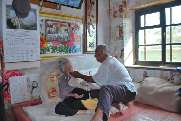 現(xiàn)如今,已經(jīng)82歲的老伴雖然已經(jīng)滿頭銀發(fā)、身體消瘦,卻依舊思維清晰、說話爽朗,臉上始終洋溢著幸福的笑容,這一切都歸功于她的好丈夫——張占英。20多年來,他們從沒吵過架,她得病之前也是一樣。 當(dāng)問及是否曾覺得累時,張占英老人輕輕地說:“20年了,要說不累是假的。但她是我媳婦,伺候她是我的責(zé)任,沒啥好抱怨的,只要有我在,我就不會讓她吃苦。”現(xiàn)在,80歲的張占英老人年事已高,照顧妻子顯得有些力不從心,可他用堅定的語氣對記者說:“我會對老伴不離不棄的。”