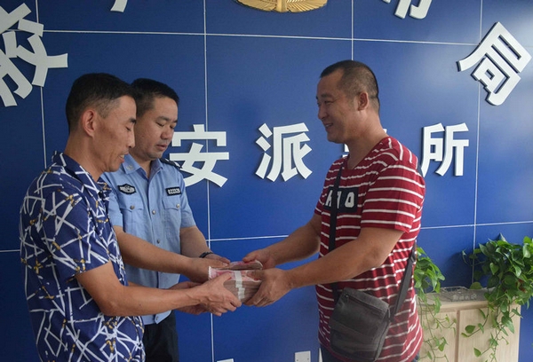 民警馬上將這一信息上報至膠州市110指揮中心,并通過監(jiān)控錄像排查他當(dāng)時打的那輛出租車。因?yàn)槭侵苣鲎廛囂啵由咸K世波情緒急躁,描述的時間也不是很準(zhǔn)確,排查起來有一定難度。派出所民警一邊安慰他,一邊仔細(xì)耐心的和心急如焚的他一起一輛車一輛車地排查。緊張排查了大約十多分鐘,阜安派出所的電話鈴又響了起來,這次是110指揮中心打來電話,說錢找到了。