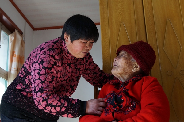 韓長翠自從嫁到桑梓店鎮鄧營村,她既要照顧奶奶、公婆又要撫育兒女,可以稱得上是一個好媳婦。然而,作為一個女人,她還有另一個身份——女兒。她的父親年輕時身體硬朗,可以照顧自己,可如今也已年近80,常年住在韓長翠的小妹妹家中,由妹妹和妹夫照料。由于曲文英已是百歲老人,身邊照顧的人須寸步不離。韓長翠的丈夫李云勇還須外出打工賺錢來補貼家用,因此照顧奶奶的擔子也就落到她一人身上,她幾乎沒有時間回娘家去看望自己的父親,更不用說床前盡孝。由于父親突發腦血栓,住院沒幾天就離開了人世。這使她痛苦不已,這也成了她一生的遺憾。