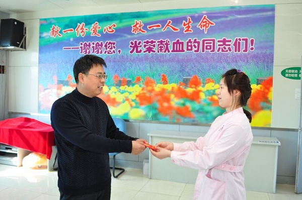 “一個人的生命危在旦夕,當(dāng)輸進你的血后,他又有了生的希望,這是無法用金錢換取的。”這是茍秀峰17年堅持無償獻血不間斷的動力源泉。2013年5月28日早晨,茍秀峰接到東營市中心血站的求助電話,由于近期血站儲量不夠,有危重搶救病人急需2個單位的成分血白細胞。茍秀峰二話沒說,請完假立即趕往中心血站。由于平時注重生活飲食,經(jīng)過嚴格檢查后所有數(shù)據(jù)都已達標(biāo)。雙臂消毒,分別插入導(dǎo)流管,身旁兩臺儀器同時啟動,一邊輸出鮮血,一邊將白細胞提取后血液輸回身體。足足4個小時,茍秀峰整個上半身不能動,腰酸了,就稍微挪動一下屁股,腿麻了,就輕微鉤鉤雙腳。采血結(jié)束后,茍秀峰的整個身體都僵硬了。他想到自己的付出,可以給他人帶來重生的希望,心里感到莫大的欣慰。