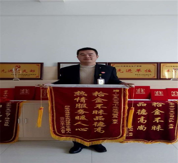 車隊及時給老太太付大娘取得聯系,并告知錢包被我們駕駛員撿到了,里面15000元現金分文未少。得知錢包找到的消息后,老人家的懸著心終于落下來了。第二天付大娘和家人一起到市公交公司三車隊辦公室取回丟失的現金,在拿到現金那一刻時,老人家激動的向車隊工作人員鞠躬表示感謝。隨后又專門制作一面寫有“拾金不昧品德高 熱情服務暖心人”錦旗送給駕駛員高東,表達對他的感激之情“這都是應該做的,談不上什么感激,撿到別人的錢,就應該及時上交歸還失主,何況這是老人家的看病錢,如果不幫助老人家找到,我心里也放不下這事。”高東的言語贏得的失主家人和同事的高度贊揚。