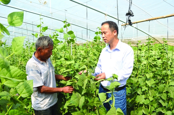 曾慶紅到大棚里查看村民種植的蕓豆