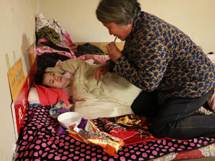 除了喂飯,每隔一段時間還要給女兒按摩、翻身、擦洗身體,每日每夜的守護和操勞,王翠蘭患上了腰間盤突出、糖尿病。然而禍不單行,1997年,16歲的女兒病情惡化,經常伴有癲癇癥狀,發作起來發出巨大的呼喊聲,面色蒼白,咬緊牙關,最多的時候一天發病好幾次,家里的蚊帳、被子很多都被她扯壞了,嚴重的時候連牙齒也咬碎了幾顆。王翠蘭害怕女兒因為抽搐傷害到自己,用包著毛巾的棍子塞到女兒嘴里,扶著女兒的頭側倒一邊,以免窒息,往往胳膊一抬就是一兩個小時。經常發作的抽搐最終導致了女兒腿部骨折,那一年的春節,一家人是在醫院里度過的。