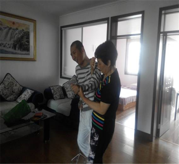 剛開始兒子連最基礎的翻身都做不到,她只能無時無刻不在兒子身邊照顧他。孩子已經長得比她還要高了,每次搬動孩子,她都要用盡渾身的力氣,但是她從來也有喊過苦和累。每日三餐的燒水煮飯、一勺一筷地喂吃喂喝,到每天為兒子擦洗身子、防止生褥瘡。從每天幫助兒子做康復訓練、定時地按摩,到一字一句地幫兒子恢復正常說話,陳其會都是親力親為,哪怕嗓子啞了,她也強忍著。家里經濟條件有限,為了能讓兒子先吃上熱乎乎可口的飯菜,她就從自己身上節省,她常說的就是:“孩子身體不好,需要補充營養,我多吃口少吃口都不要緊”。她吃的飯,常常是孩子吃剩下的殘羹冷炙。為了省錢,她連件新衣服都不舍得買,衣服只要還能穿,再舊再破也舍不得扔。為了能讓兒子呼吸下新鮮空氣曬曬太陽,她一人咬牙扛著比自己還高大沉重的兒子上下樓。十幾年如一日,陳其會靠著母親強大的意志力堅持了下來。功夫不負有心人,在她精心的照料下,兒子慢慢地可以說一些簡單的話了,也可以靠著他人的力量站起來了。而她卻頭發漸漸變白了,皺紋也越來越深了。常有人問她這么多年是怎么一個人熬過來的,她說她一直堅信兒子會好起來的,只要有兒子在,自己就是幸福的,母子平安就足夠了。她時常教導兒子將來如果好了,一定要回報社會,報答社區、街辦和社會人士給予的幫助。