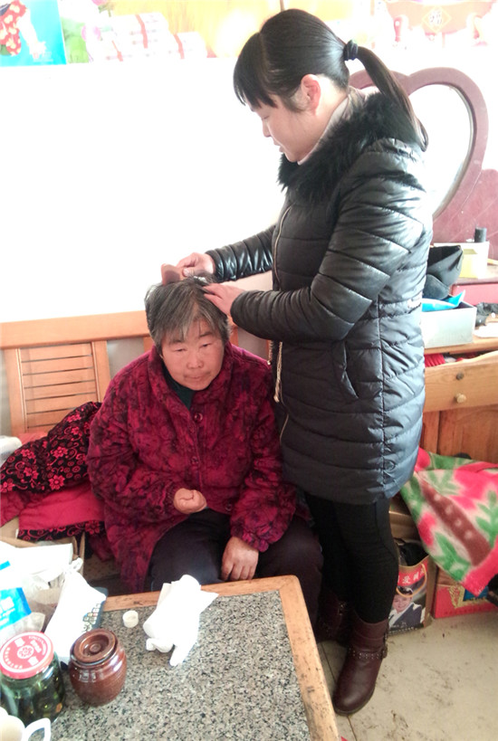 從醫院回家的一段時間,婆婆的精神狀態不好,總是自己想不開,不想拖累自己的兒子和兒媳,每天都是絮絮叨叨地說著。為了給婆婆開解,田紅梅每天堅持給婆婆擦拭、按摩身體,忙完農活回來陪婆婆聊天、解悶,村里的大事小事,電視機里的新鮮事,一股腦地說給婆婆聽,一有時間就攙扶婆婆鍛煉恢復,老人想吃啥,她總是盡量滿足,從來不嫌麻煩。時間長了,老人的心結解開了,臉上開始展現出了笑容。田紅梅說:“我沒有其他的本身,能把老人照顧得舒舒服服、干干凈凈、開開心心,我就知足了。”
