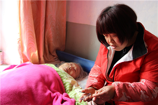 2000年戴敏的母親因惡性高血壓誘發(fā)了腦梗塞,發(fā)病之初,生命垂危,戴敏一人在醫(yī)院照顧了老母親2個月,老母親脫離了生命危險,意識是恢復(fù)了,但從此卻不能說話,全身癱瘓不能自理。10多年來,母親病臥在床,吃喝拉撒都在床上,她每天起早貪黑為母親喂水喂飯,端屎端尿,癱瘓病人最困難的就是大小便,因為癱瘓在床,老人大便便秘,時間長了,戴敏也積累了一些經(jīng)驗,大便之前先給老人揉肚子。但即便是這樣,每次大便還是十分困難,于是戴敏每次都要用手伸進老人的肛門把大便慢慢摳出來。為了照顧父母,戴敏寸步不離地守護在老人身邊。在戴敏的悉心照顧下,老母親現(xiàn)在左胳膊自己可以撓癢癢了。