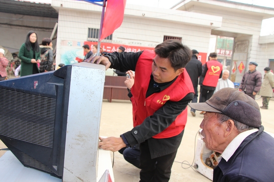 2014年5月,郯城縣青年志愿者協會開展了“快樂星期天·鄰里守望走進紙板廠家屬院”志愿服務活動?吹角嗄曛驹刚邆優樯鐓^居民免費提供健康查體、理發、政策宣傳等豐富多彩的志愿服務。于師傅當場找到了團縣委副書記李真同志,詢問自己雖然自身有殘疾,但是有十多年維修的技術,可不可以成為一名青年志愿者為人民服務。碰巧,這時有居民來詢問可不可以給維修電視、開水壺等小家電時,于師傅就什么也沒說的拿起工具給他們進行免費維修。雖然那天于師傅很忙,也十分的辛苦,一直到下午近三點鐘還沒有吃中午飯。但是,看到那么多人因為于師傅的志愿服務而解決了問題,聽到社區居民說謝謝的時候,我們都能清楚地感覺到于師傅心里的那份甜蜜。就這樣,于師傅光榮地成為了一名青年志愿者。2014年以來,于師傅與青年志愿者協會一起先后走進了東城社區、酒廠家屬院、馬東社區、紅花埠社區等城市工人社區和農村居民社區26個,免費維修維護冰箱、洗衣機、電風扇等家用電器900余件,免費維修水壺、電飯煲、插排等小家電2800余個,服務社區居民2200余人,受到了群眾們好評,也贏得了廣大志愿者的普遍贊譽。在為社區居民維修家電的同時,于師傅還是一名情系夕陽關愛孤寡老人青年志愿者,長期為馬頭、花園等4個養老院免費維修家電,并在店里生意不是很忙的時候,帶著兒子于豐毅來到養老院親情陪伴,為孤寡老人包餃子、聊天、打掃衛生。