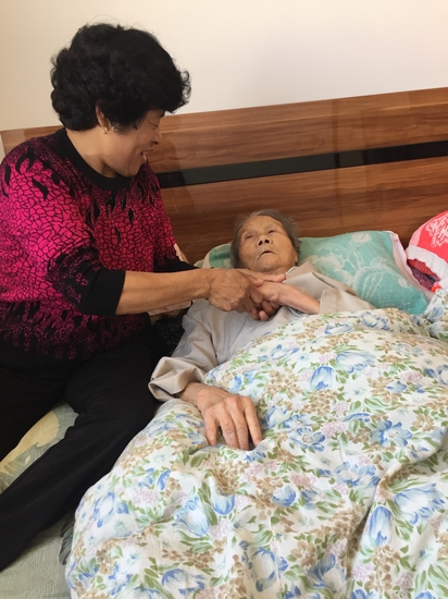 23年的臥床對一個高齡老人來說也是一種精神煎熬。為了打消老人的顧慮,鼓勵婆婆積極的面對生活,隋媛珍閑下來就會坐在老人床邊陪她說說話,聊聊天,讓老人好好地活著,看孫子結婚,抱重孫子,用質樸的話語給老人精神支柱,心存生活的希望。