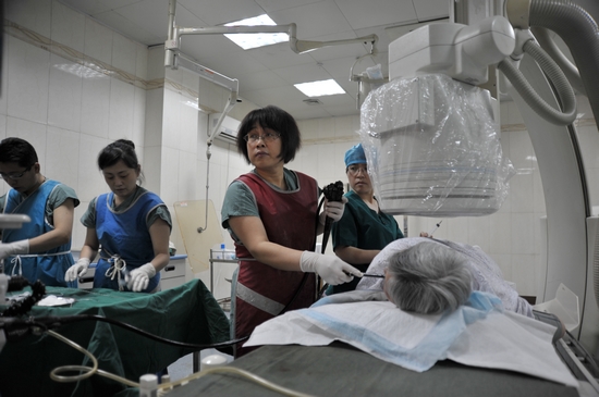“劉主任視力不佳,但是她能精準地識別出早癌等微小病變,她說不靠眼力靠心力,那是一種內鏡醫師特有的敏感力!睘I醫附院內鏡中心護士長高桃這樣評價劉成霞。按說,劉成霞已過“知天命”的年紀,肩上的榮譽、職務早已“達標”,完全可以停下來歇歇了,但她卻從未停止業務鉆研的步伐,甚至是焚膏繼晷地在拼搏——2010年到美國霍普金斯大學醫院做訪問學者,2012年前往新加坡國際關系學院進修,2014年前往日本國立癌癥研究院研修。在日本進修的3個月,吃慣饅頭炒菜的劉成霞享受不了頓頓料理、大醬湯,常常處于半饑半飽的狀態中,但她的表現,足以讓我們驕傲。在一次案例學習中,13個國家醫師同時診斷,只有她一人精確診斷出患者存在的所有結腸病變!而且,她是所有人中年齡最長的。
