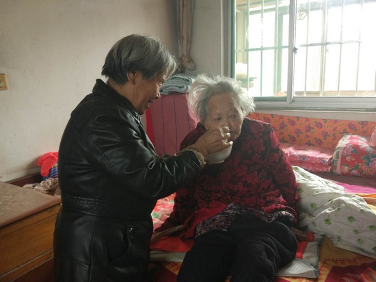 有段時(shí)間,婆婆因?yàn)槲赋鲅龥](méi)有多大力氣吃東西,劉貴清就把食物嚼碎了再喂給婆婆吃,看著婆婆一點(diǎn)點(diǎn)的吃下東西,劉貴清懸著的心終于落下了。