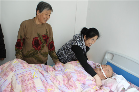 公公在醫院住了半年,仍沒有好轉,醫生建議回家靜養。公公回家的第一天起,李友梅開始了她的護理人生。每天4點起床,開始做一家人的早飯,6點給公公放收音機廣播,這是老爺子多年的習慣,醫生也說這樣有利于恢復。隨后一天的護理工作開始了,給公公洗臉、刷牙、喂飯、按摩,每隔一個小時翻一次身。冬天還好,到了夏天,得一天三次給他擦洗身體,天天如此,從不間斷。單就喂飯便是個技術活,由于公公屬于深度昏迷,喂飯得吃流食,插胃管。李友梅擔心自己的技術不行,害公公受苦,就先在自己身上試驗。多少次流鼻血,吐膽汁,終于摸索出經驗。近兩年的656個日夜,在李友梅的精心照料下,原本被醫生斷定“不可能恢復”的公公已經從深度昏迷睜開了眼睛,李友梅用信心創造了“病床奇跡”。
