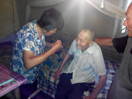 由于王秀靈對公公的親情照顧與常年按時吃藥,現在老人的身體有所好轉,老人能自己慢慢穿衣服了,下床扶著東西能慢慢移動。老人十幾年的臥床,現在能起床,算是王秀靈孝敬的功勞,也算是一奇跡吧。王秀靈幾十年如一日照顧三位老人,真是費盡了心血,教育了東鄰西舍,她的一舉一動孩子們都看到了眼里,記在了心里,王秀靈成了孩子們的第一任老師。兒子和姑娘在王秀靈的啟發下,每年最少從外地回家兩次,一是看望常年有病90歲高齡的爺爺,二是安慰60多歲的媽媽與爸爸。公公的身體有了好轉,王秀靈的身體也平靜了許多。