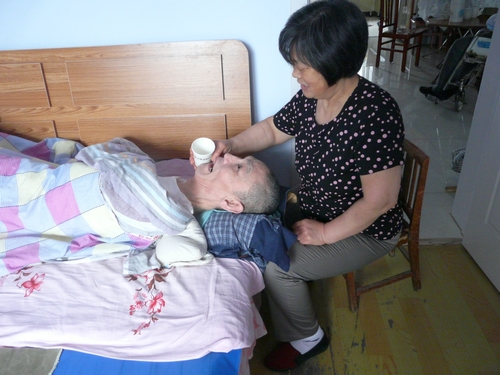 這樣日復一日,一直度過了26個春秋。長期的護理,安為香摸索出了一些“經驗”:用紗布裹著手指,沾著鹽水一顆顆為丈夫刷牙,用榨汁機為丈夫做各種各樣的營養粥和中藥粥;在丈夫的腋窩、腿窩、胳膊肘都襯著棉布或者軟紙,用手絹隔開指縫,尿布勤洗勤換……在安為香的精心照顧下,丈夫的情況一直都保持穩定,這也讓她感到自己的一切付出都是值得的。
