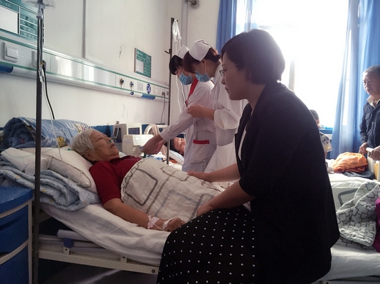 2015年7月底,因為下雨濕滑,獨自一人在家的婆婆不慎從高處跌落,造成盆骨骨折,并后腹膜持續(xù)出血多日。當時接到電話急忙從單位趕回家的楊穎看到院中的血跡也是著急萬分。叫救護車到了醫(yī)院后,她又忙前忙后請鄰居一起幫忙抬著婆婆做各項檢查,直到診斷結果出來,辦完住院手續(xù)以后,她才發(fā)現(xiàn)穿著高跟涼鞋的雙腳上已經滿是水泡?墒撬不能休息,婆婆因為疼痛情緒也很糟糕,她坐在病床邊一直握著婆婆的手不停的說著安慰的話想分散些老人的注意力。一直到第二天外出旅游匆忙趕回的姐姐和請假歸來的丈夫到達,她才發(fā)現(xiàn)自己連口水都沒顧的上喝,嗓子已經啞的說不出話。接下來的住院期間,因為婆婆雙側盆骨骨折,需要完全臥床治療,大小便都不能自理,她不怕臟累,不怕辛苦,每日守在病床前照顧伺候。公婆每次都跟去探望的人說:“我們真是有個好兒媳婦,端屎端尿的,從來也不嫌臟累!”看在眼里的丈夫也對她更加敬重。