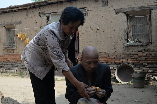 “看,那就是她小叔子,在那曬太陽呢……”剛踏進(jìn)院子,熟悉情況的楊廣獻(xiàn)就給筆者介紹起來,順著楊廣獻(xiàn)手指的方向,筆者看到了村民口中說的“精神和身體都不正常的小叔子”楊道忙,他安靜地坐在一個(gè)很矮的馬扎上,除了眼珠之外一動(dòng)不動(dòng)。“咱們進(jìn)屋,坐下說吧……”筆者帶著滿肚子的疑問剛想詢問情況,被馮秀華老人打斷了,她的故事太長,估計(jì)要和大家聊上好久。
