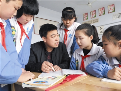 不只張?jiān)谘蟊敬宓暮⒆右灿衅渌宓暮⒆觼砩稀八狞c(diǎn)半課堂”。放學(xué)后張?jiān)谘笤谧约旱慕淌依锏群颍灰粫?huì)兒,不同年級(jí)的20多個(gè)學(xué)生陸續(xù)走進(jìn)教室,他們已經(jīng)習(xí)慣了放學(xué)后到張老師的“四點(diǎn)半課堂”繼續(xù)上課。利用放學(xué)的這段時(shí)間,張?jiān)谘蟾鶕?jù)每個(gè)學(xué)生的實(shí)際情況進(jìn)行分類指導(dǎo),并且針對不同年級(jí)、不同學(xué)科學(xué)生提出的問題進(jìn)行耐心解答。“這段時(shí)間正好是空當(dāng),家長沒下班,孩子們回家了也無人照看,我利用這段時(shí)間給孩子們輔導(dǎo)一下功課。”張?jiān)谘笳f。