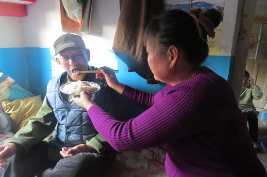 姜秀珍的公公和婆婆都已年入古稀,尤其是她的公公已經94歲高齡,六年前患有白內障,雙目完全失明,生活不能自理。十幾年來,姜秀珍不僅要照顧年幼的三個孩子,還要細心照料婆婆和生活不能自理的公公的衣食起居。