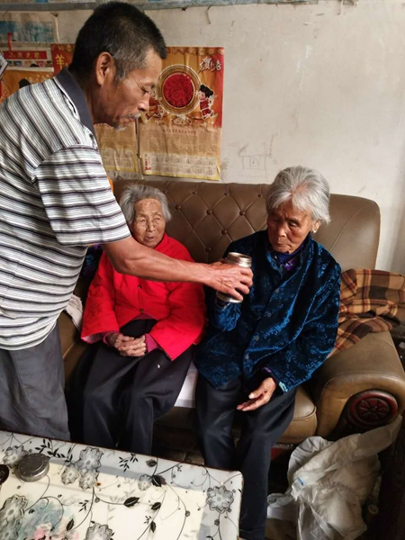 前兩年,兩位老人先后得了腦血栓,岳母昏睡了十幾天,治療半個(gè)月,由于年齡太大,命保住了,但是卻再也站不起來了。每天早上一起床,李慶民便幫岳母穿好衣服,再把岳母抱到客廳的沙發(fā)上。生病痊愈的母親情況稍微好一些,住院治療半個(gè)月,基本沒留下后遺癥,等母親起床后,李慶民便扶母親到客廳,然后陪兩位老人聊天解悶。岳母的一日三餐成了大問題,每次吃飯、喝水都要喂,大小便都在輪椅上解決。岳母年齡大了,經(jīng)常大便干燥,有時(shí)需要用開塞露解決,實(shí)在解不下來時(shí),李慶民就用手一點(diǎn)一點(diǎn)摳出來,即便有味他也忍著從來不嫌棄,正是一顆孝心讓這位淳樸的農(nóng)民不怕臟不怕累。