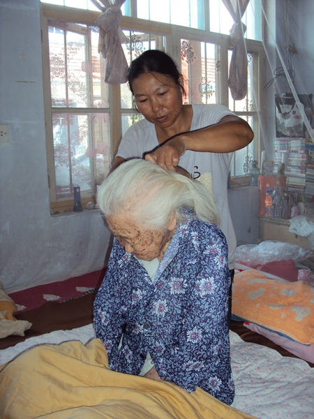 為此,從新婚第二天開始,她便脫下紅嫁衣,換上舊衣裳,把照料老人當(dāng)成了自己的責(zé)任,與丈夫一起挑起這副沉重的生活擔(dān)子。由于當(dāng)時90多歲的太婆婆,已經(jīng)癱瘓在床多年,吃喝拉撒完全依靠別人。為了照顧太婆婆,尚慶霞自己放棄了原本屬于她那個年紀(jì)的娛樂活動,甚至沒有時間去城里為自己添置一件新衣服。每天,她早早做好飯菜送到老人床前,核桃粉、芝麻糊、水煮蛋這樣的營養(yǎng)品一直沒有斷過,天天換著花樣給太婆婆補充營養(yǎng)。雖然癱瘓在床,尚慶霞卻把老人收拾的利利索索,干干凈凈。公公逢人便夸:“我命好攤上好兒媳,她性格好,人善良、正派,聰明伶俐。每天都給她太婆婆洗頭、洗臉、按摩,睡前用熱水洗腳,隔三差五洗身子、剪指甲,無微不至,這是我們?nèi)业母7帧!?/p>