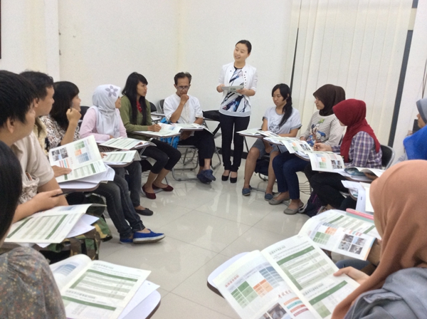 她每天給本土教師11個課時的高強度培訓,她上課時張弛有度,注意理論與實踐相結合,學員們受益匪淺并順利通過了由教育部實施的教師資格考試。2014年3月,泗水孔院承辦了漢辦《當代中文》印尼語版(中、高級)的教材編譯項目,宋麗麗擔任該項目組組長,統籌改編、翻譯、校對事務,與孔院志愿者們一起把教材改編為符合印尼風俗習慣、適合印尼學生用書需求的內容,目前教材已由華為教育出版社出版發行。