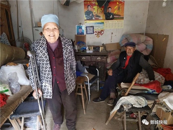 今年已經(jīng)70歲的李玉真,因股骨頭壞死做過(guò)手術(shù),走到哪里都要拄著拐杖。本該是頤享天年的年紀(jì),卻依舊拖著病殘的雙腿照顧年邁的公公。