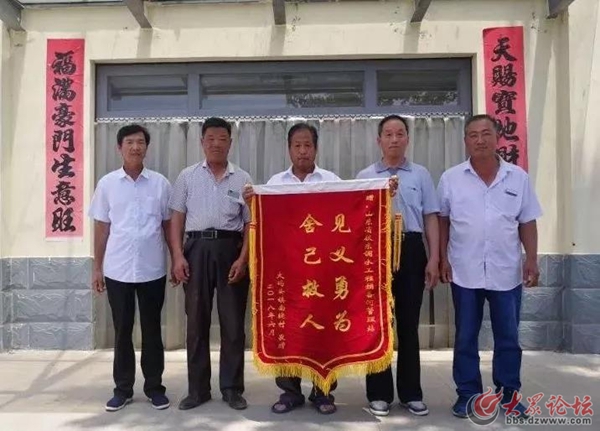 在山東省膠東調水工程東營分局預備河管理站,有一面寫有“見義勇為、舍己救人”八個大字的錦旗。錦旗是廣饒縣大碼頭鎮南堤村贈送的,用這種簡單而又真誠的方式,對該站三名員工徐木讓、燕景讓、燕修堂見義勇為搶救落水者的行為表示感謝。
