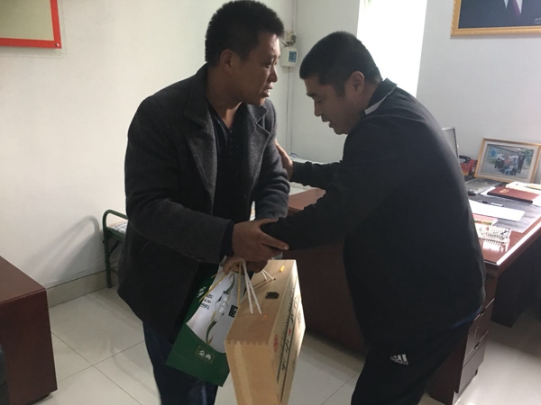 半月后,幾位孩子的家長通過手機號聯系上劉洪燕,帶著禮物來到大王鎮劉集后村,緊緊握著村支書劉洪燕的手,向他表達感激之情。激動地說“劉書記,謝謝你!幸虧當時有你‘出手’,孩子們現在已經痊愈出院了!”。